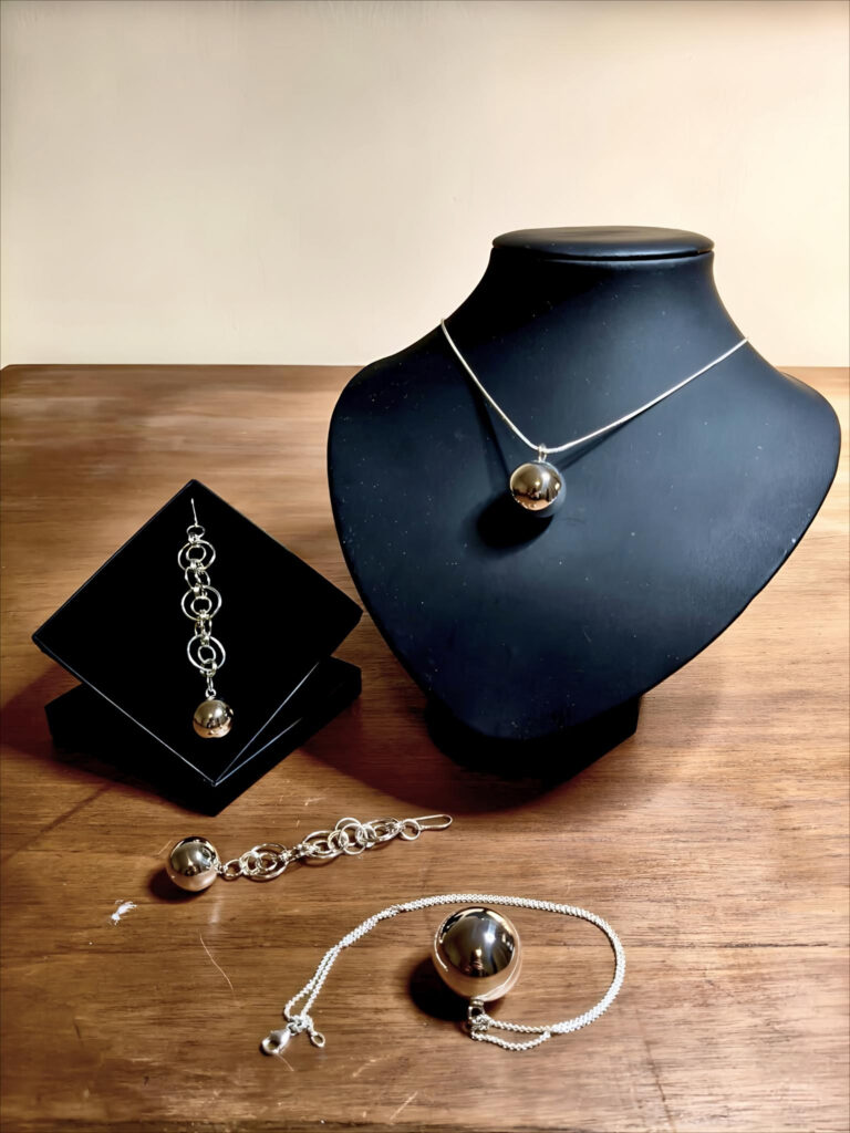 Silver ringing ball Turn up the volume and listen to how bright it sounds. All jewerly has a ringing ball.